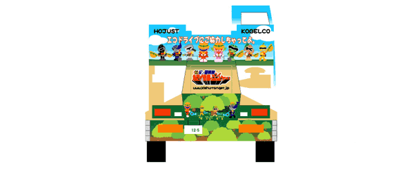 後ろは一般道走行中、後ろの車に少しでも共感してもらえたらというコメント表記。 工事現場の片隅で作業中の紀州レンジャー達は空いた時間に緑に水をあげている。